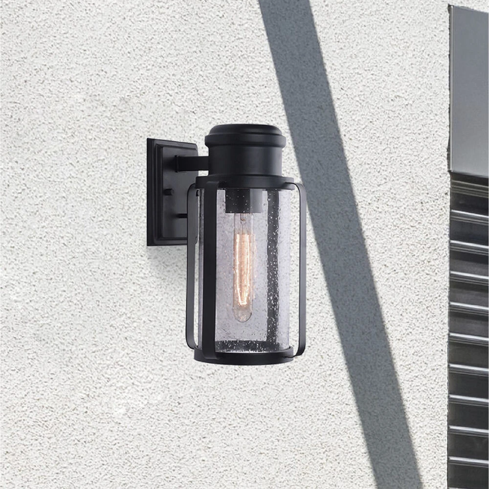 Abner – 1 Light Outdoor Wall Sconce – Matte Black – Clear Seedy – 9 Inches