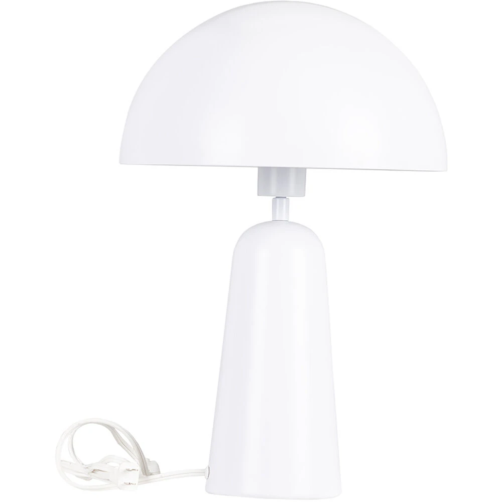 The ARANZOLA table lamp features a steel structure and an all-white finish. The product has a conical base with a rounded tip and a dome shaped shade with a white finish. The table lamp can switch on and off easily using the in-line switch. Whether in the living room, bedroom or hallway, the product offers stylish lighting for any space due to its minimalist design.