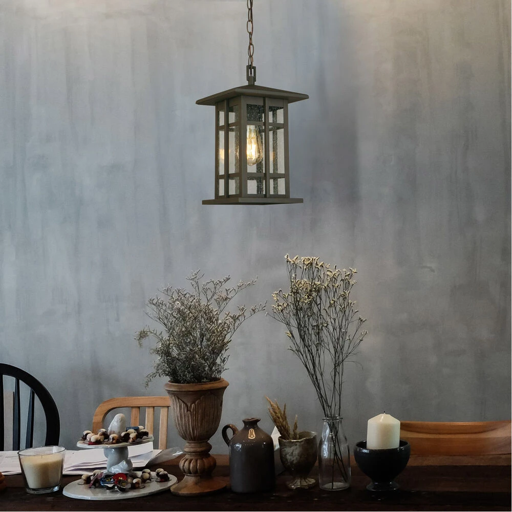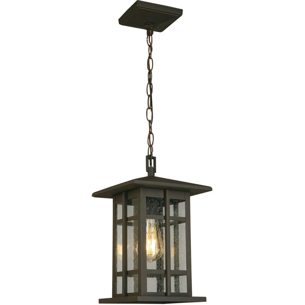 Arlington Creek – 1-Light Outdoor Pendant – Matte Bronze – Clear Seeded Glass