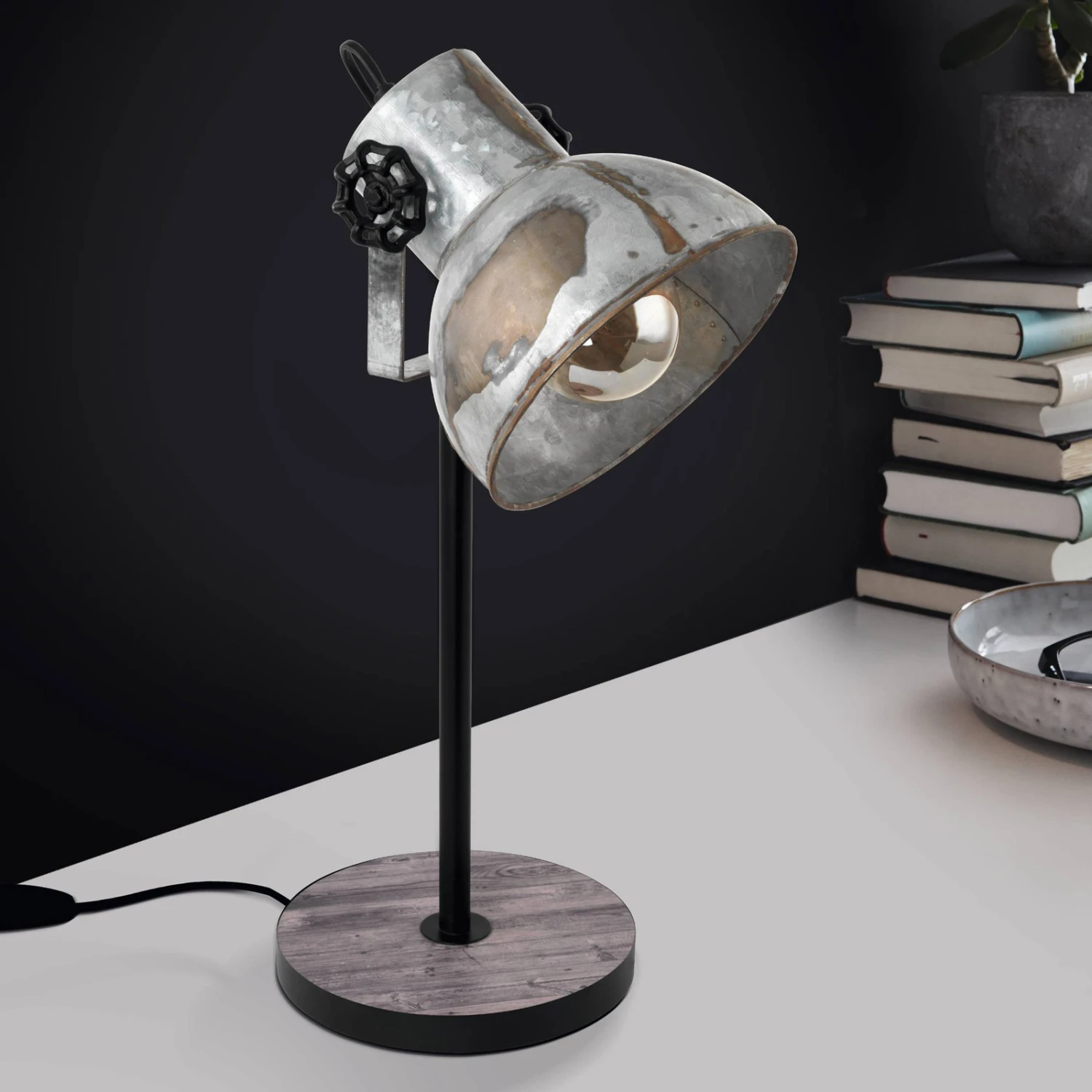 The Barnstaple table lamp brings a gleaming simmer and a brilliant light into your home to light up a desk or a night console. The stable base has a wooden design and a dark patina, whilst dark details give the metal lampshade an understated basic appearance.