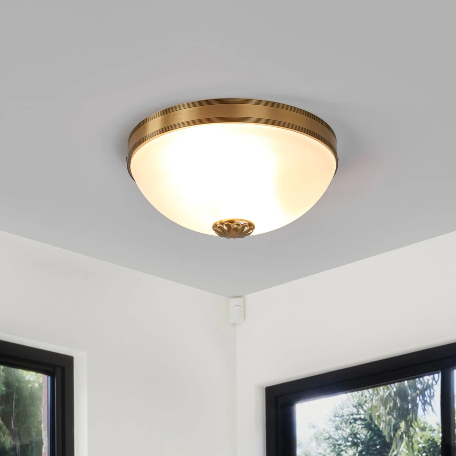 The design of this ceiling light is elegantly royal. It is the form and the antique material of the light that radiate exclusivity and luxury. The special antique look of the metal is reached through the bronzing procedure, a chemical treatment, which gives the metal a black colour. The simple opal glass goes hand in hand with the bronzed metal and simultaneously creates an antique and an artwork, which does not at all lose anything in its effect. The series offers wonderful pendant, ceiling and wall lights with which a complete basic lighting in an antique design can be created.