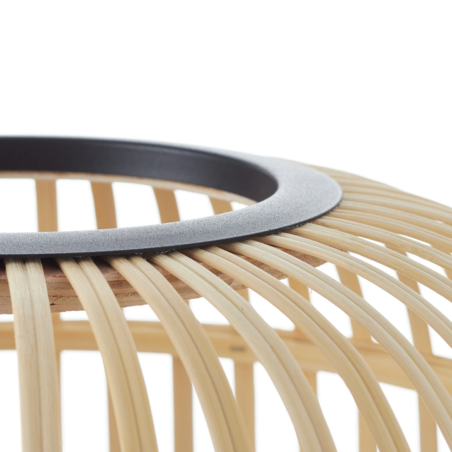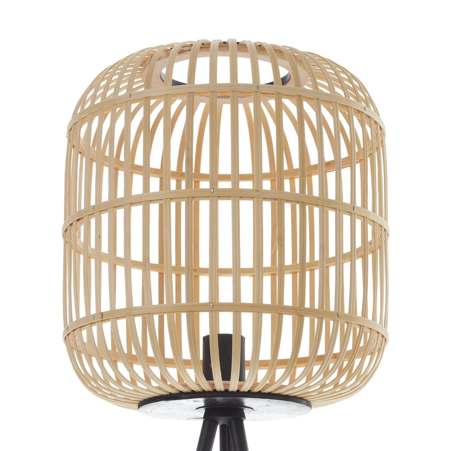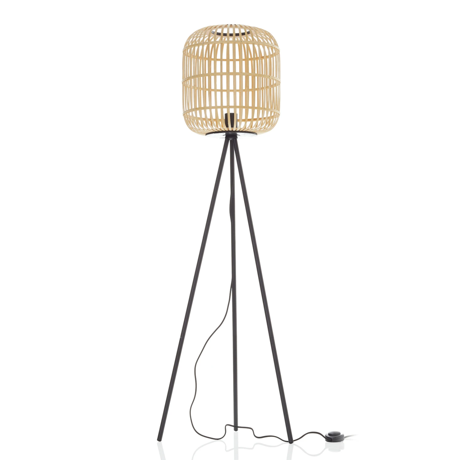 The colour contrasts of light wood and the three black steel legs set attractive accents. This turns the floor lamp into a modern accessory which stands out from other lamps due to its special shape. As additional lighting it is an enrichment in every room and creates a cosy light.