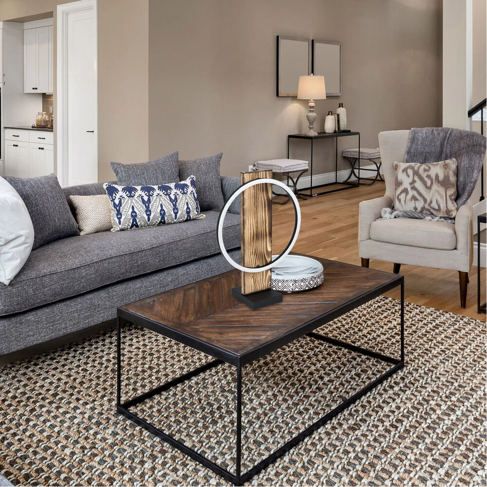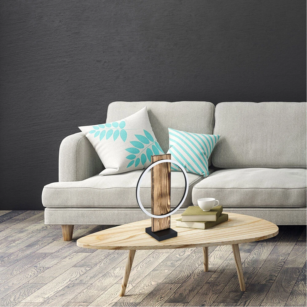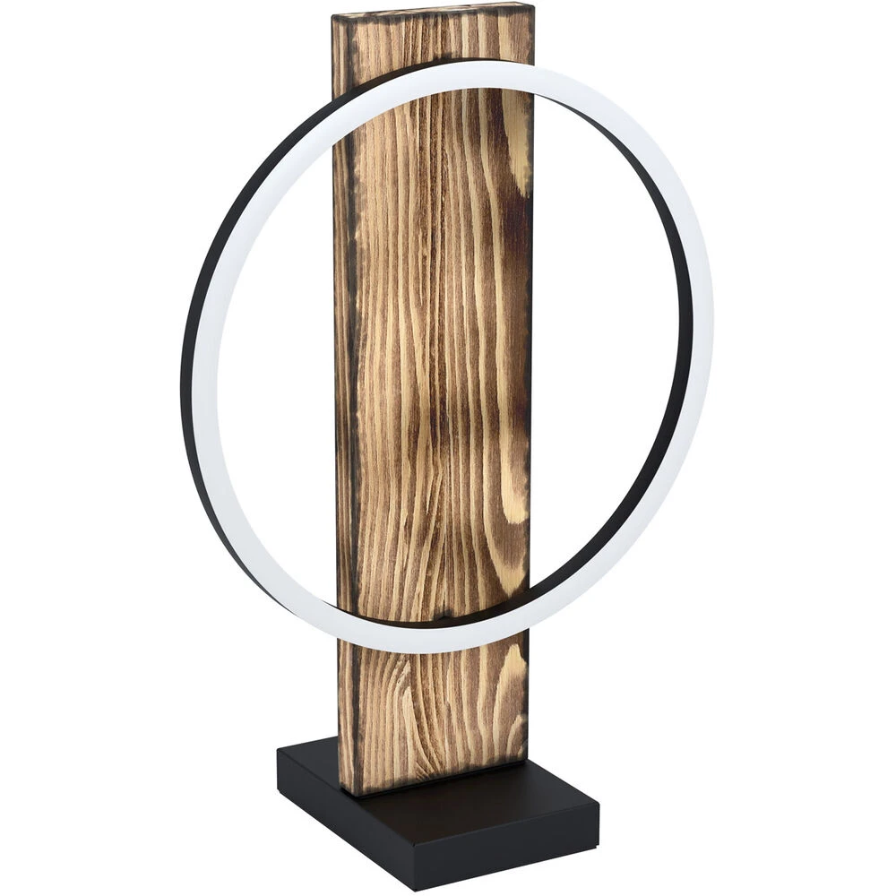The Boyal LED table lamp by Eglo has a rustic yet refined appearance. This table lamp light features a brushed pine wood finish. Its integrated LED light source emanates from the single black circular ring creating a look thatโs both rustic and modern