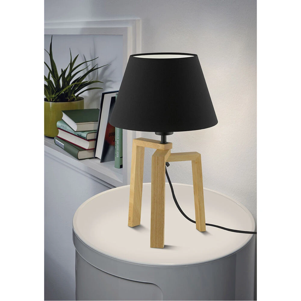 Eglo’s Chietino family exudes modern-meet-traditional style. This1-bulb Table Lamp features a wood base and black fabric shade. The wooden accentagainst the black finish of the shade lends it aesthetic presence that will complement anyinterior decor style. Great for living room, bedroom, office, etc.