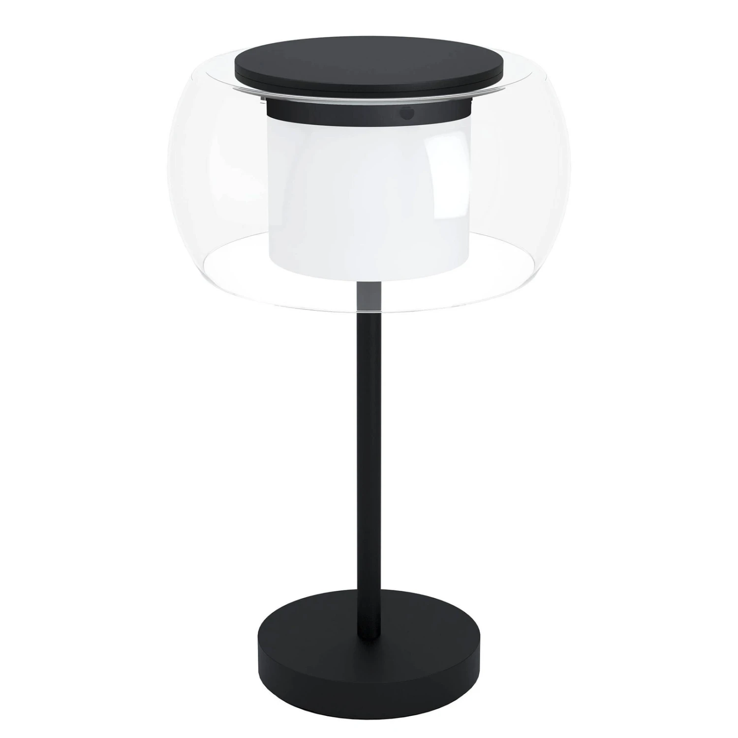 The stylish LED table lamp Briaglia-C offers a modern look with smart control technology. The lampshade made of white glass, which houses the LED technology, is enclosed here by a larger, transparent glass. The look is rounded off with a contrasting black base and a black element on the top of the shade.