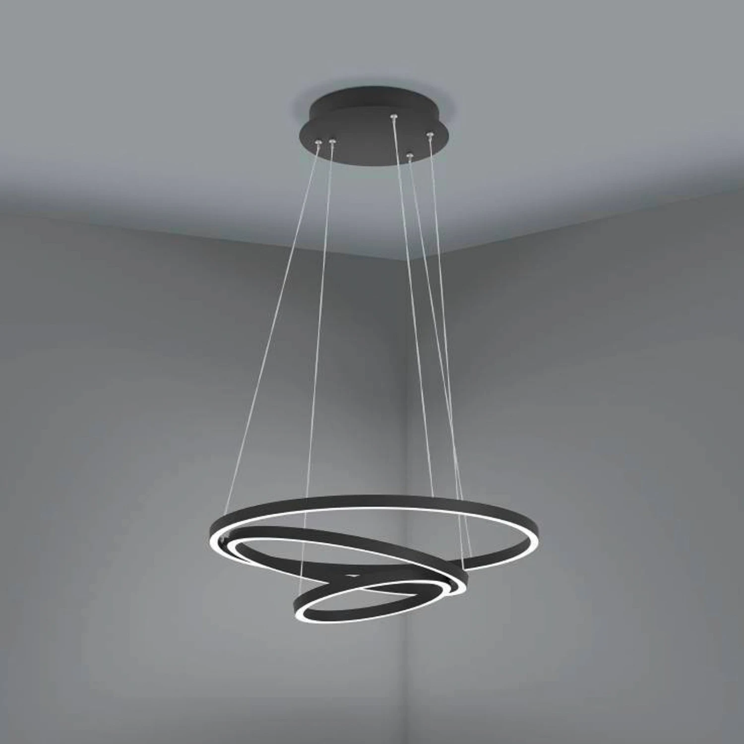 Adjustable LED pendant light Lobinero-Z, ring-shapedThis modern LED pendant light called Lobinero-Z comes from the smart, ZigBee 3.0-based range by EGLO connect and inspires not only with its controllability but also with its look.Consisting of three ring-shaped LED profiles, this light diffuses its light evenly in all directions. The angle of the rings can be adjusted individually. By controlling it via the free AowX HomeControl app, it is possible to vary the light colour and dim the light brightness. There are also functions such as creating groups with other lights or integration into schedules and scenes.Functions / compatibility:- controllable with the free AwoX HomeControl app- compatible with smart home systems from other manufacturers that use ZigBee 3.0- direct connection with Amazon Echo and Google Home possible- increased range through additional Bluetooth mesh- up to 50 lights or lamps can be controlled at the same time- compatible with all articles in the EGLO connect-c Bluetooth series- controllable with a suitable remote control even without internet access (see accessories)