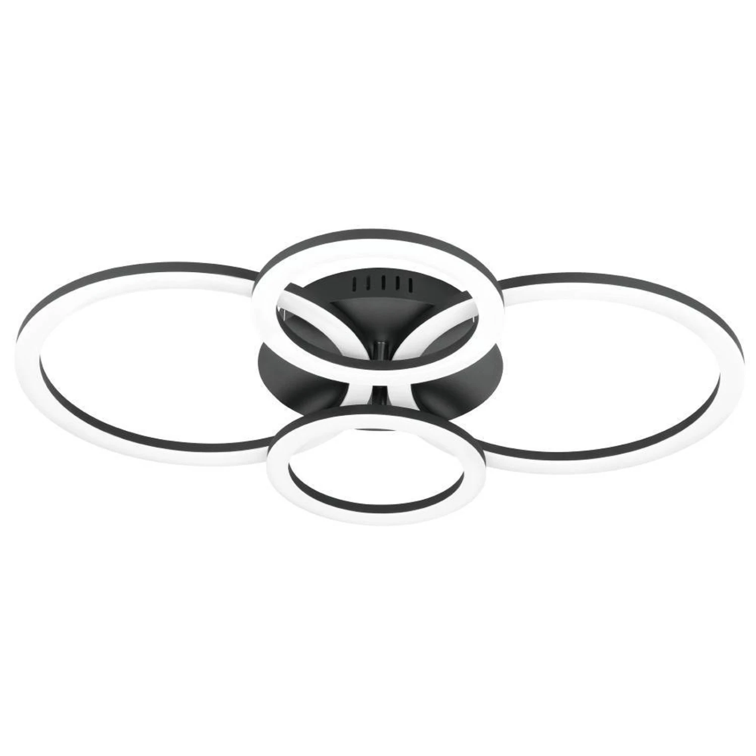 Round, four-lamp LED ceiling light Parrapos-ZThe LED ceiling light Parrapos-Z can be effortlessly controlled via the free AwoX HomeControl app. This provides a wide range of lighting design options. The four side-by-side rings, which are made of black metal and have white plastic covers, can shine in up to 50,000 shades of white. In addition, the brightness can be regulated and there is the possibility to design different schedules, groups or even scenes.Features / Compatibility:- controllable with the free AwoX HomeControl app- compatible with smart home systems from other manufacturers that use ZigBee 3.0- direct connection with Amazon Echo and Google Home possible- increased range through additional Bluetooth mesh- up to 50 lights or illuminants simultaneously controllable- compatible with all articles of the EGLO connect-c Bluetooth series- controllable with a suitable remote control even without Internet access (see accessories)
