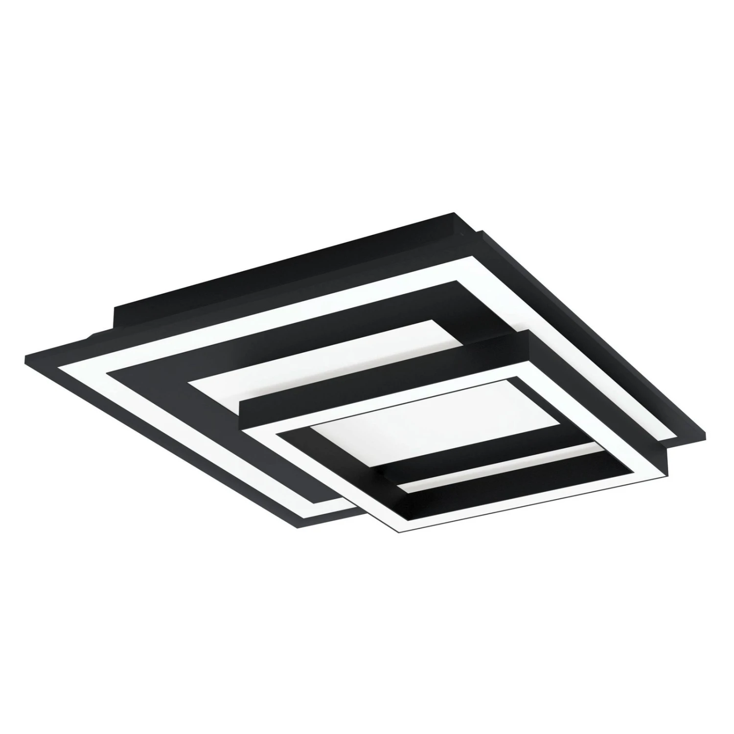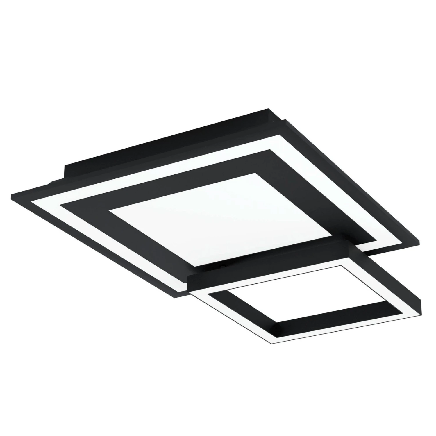 Savatarila-C is a ceiling light with a geometric design. It consists of a square main light and a small square swivel frame that can be adjusted individually. The integrated LEDs are smart controllable and can be controlled via Bluetooth technology using a suitable app or a suitable remote control (not included). Dimming as well as the regulation of the color temperature from warm white to daylight and the setting of countless colorful gradations is possible. Thus, the LED ceiling light Savatarila-C offers versatile lighting for any situation.