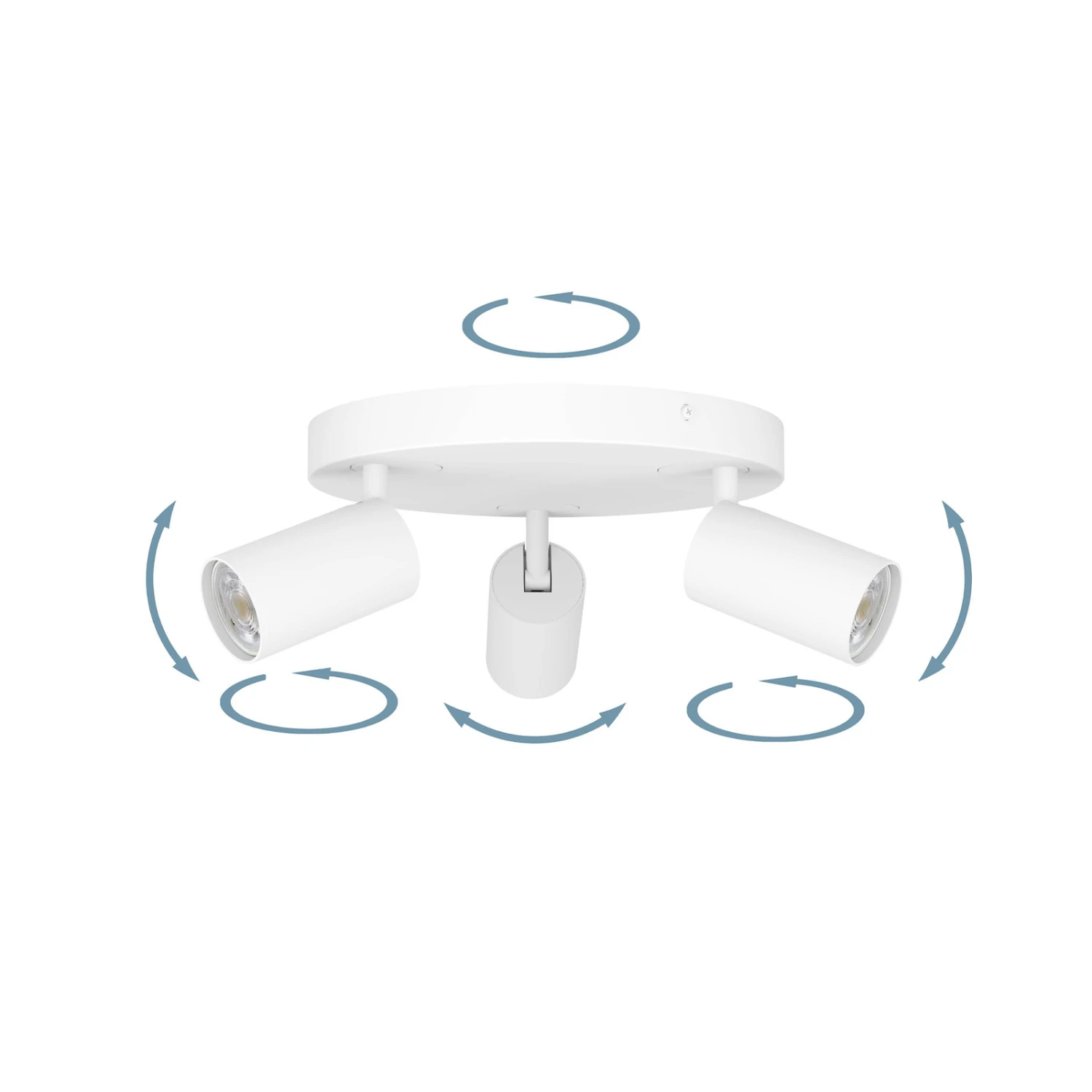 Three-lamp Telimbela-Z LED ceiling spot, smart controllableThe round Telimbela LED ceiling spot made of steel, equipped with three movable spotlights, is supplied including smart controllable light sources. These offer both coloured light from a variety of RGB light colours and white light that can be adjusted in the range from warm white (2,700 K) to daylight (6,500 K). All settings can be adjusted via the AwoX Home Control app, which is available free of charge for Android and iOS. The control of the luminaire via Bluetooth as well as ZigBee 3.0 also enables the control via compatible voice assistants and the integration of the luminaire into compatible smart home systems.A further control option is offered by the remote control available as an accessory.features / compatibility:- controllable with the free AwoX HomeControl app – compatible with smart home systems from other manufacturers that use ZigBee 3.0- direct connection with Amazon Echo and Google Home possible- increased range through additional Bluetooth Mesh- controllable with matching remote control even without internet access (see accessories)