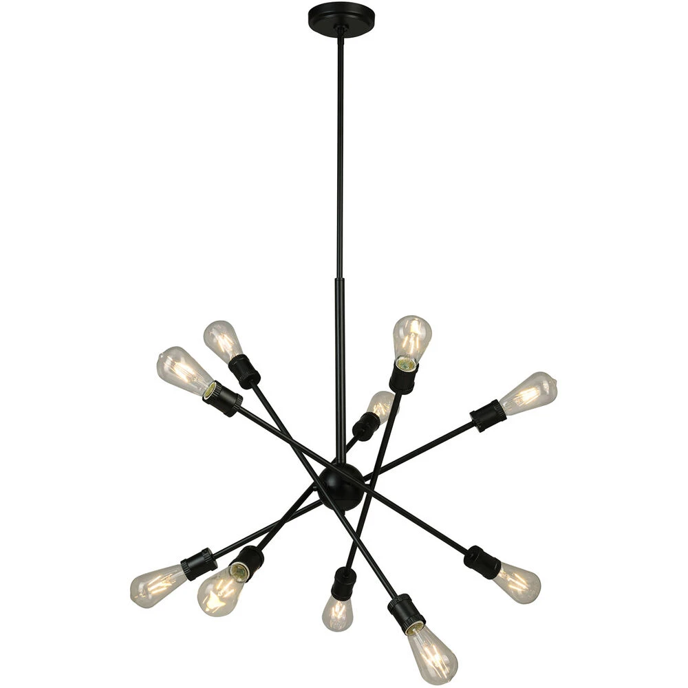 Etris Row – 10 Light Open Bulb Pendant – Black