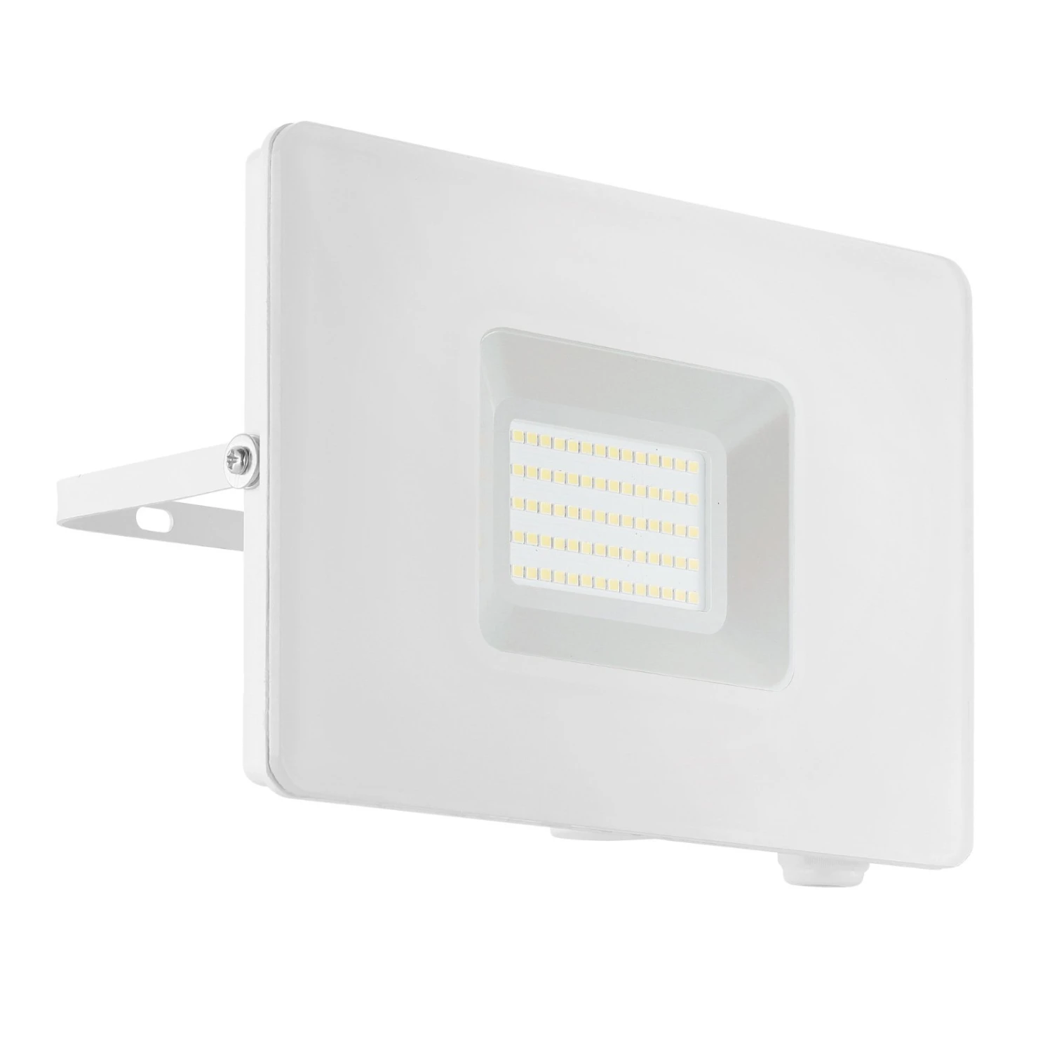 The very flat Faedo 3 LED outdoor spotlight made of aluminium in brilliant white has an IP65 protection rating and is protected against the ingress of dust and water jets, making it suitable for mounting in unprotected outdoor areas. The mounting bracket allows the spotlight to be mounted on a wall, under the roof overhang or even in a corner. In the bracket the spotlight can be tilted according to the requirements. Behind the clear glass cover are energy-efficient LEDs, which shine in the light colour universal white.