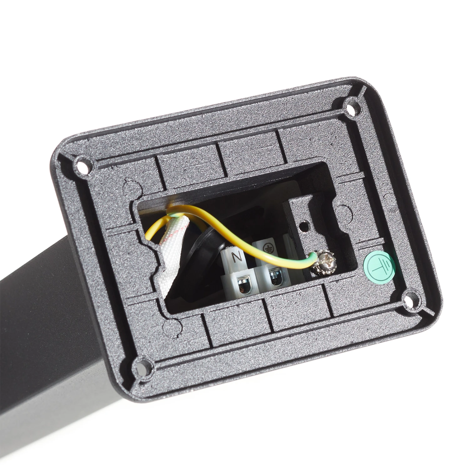 Exactly where light is needed on paths, terraces and driveways, the Fiumicino LED path luminaire shines it, namely at a wide angle forwards and down onto the ground. This is achieved by the curved luminaire head of the black path light. A powerful LED board has been installed in it, which is covered by a satinised diffuser, so that the light is evenly diffused. The body and frame of the path luminaire are made of die-cast aluminium and powder-coated in black with a light texture.