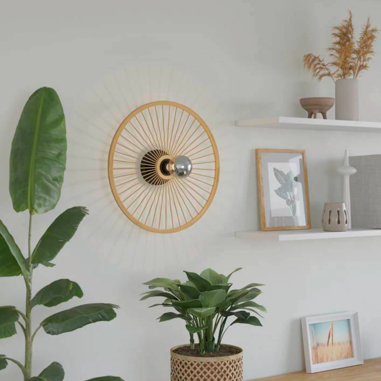 EGLO Leominster ceiling lamp round wood lampshade