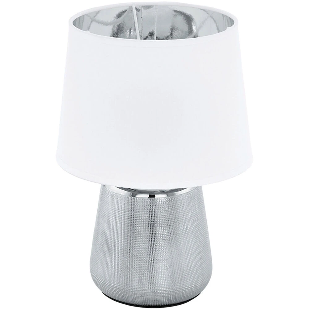 Manalba 1 Table Lamp, Silver Finish, White Exterior w/ Silver Interior Fabric Shade, 40W Candalabra Bulb