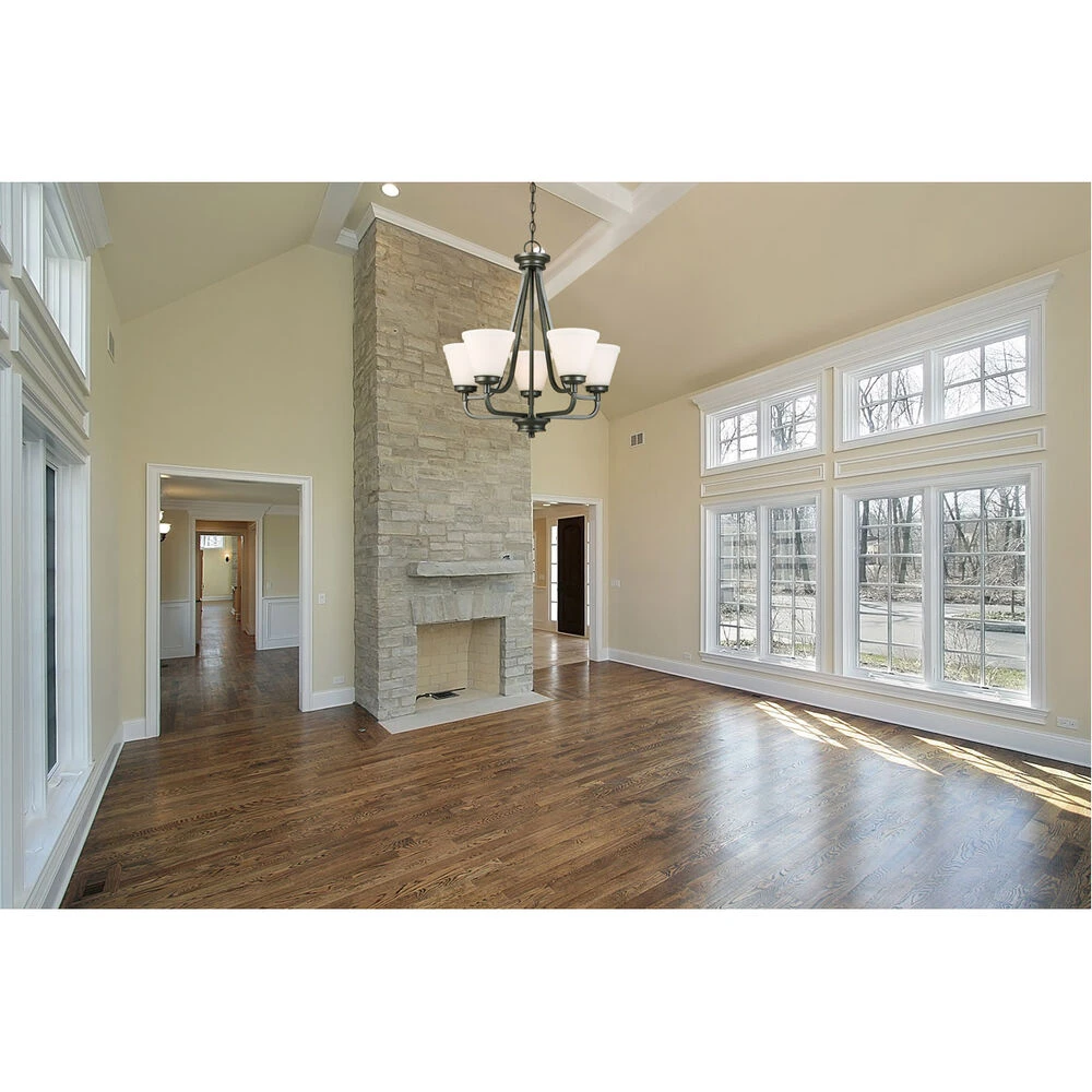 The Mayview Five Light Chandelier by Eglo will make a striking addition to your home. Constructed from durable metal, it features a striking graphite finish. A quintet of upturned frosted glass shades completes the look, producing a warm and inviting glow. Versatile and appealing, the transitional design is ideally suited to a wide variety of interiors.