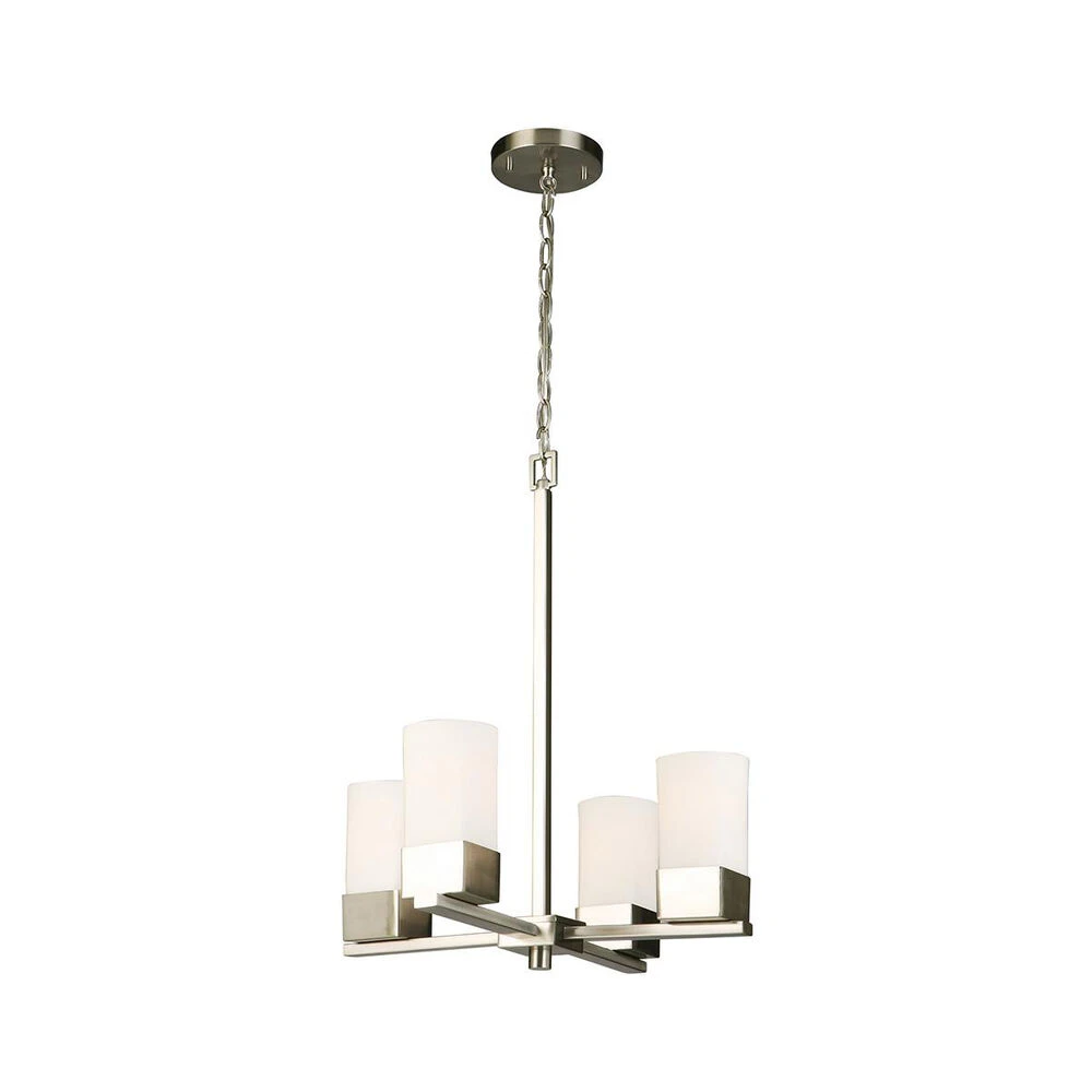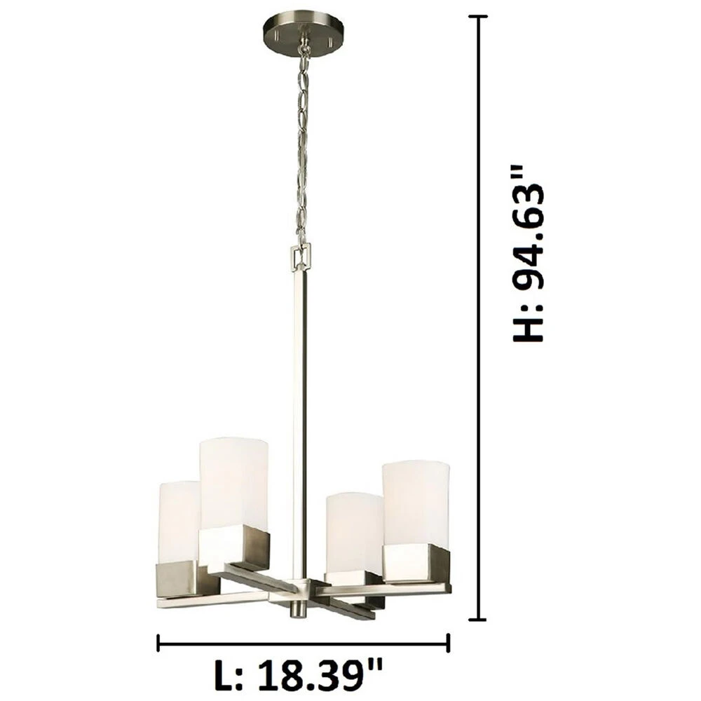 Novela – 4-Light Chandelier – Brushed Nickel Finish – Frosted White Glass Shades
