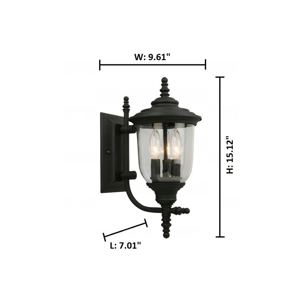 Pinedale – 3-Light Outdoor Wall Light – Matte Black – Clear Seeded Glass – 15 Inches
