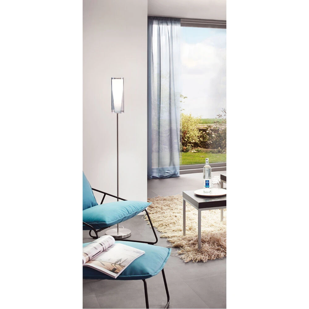 Pinto Nero – 1-Light Floor Lamp – Matte Nickel – Smoked – White Glass