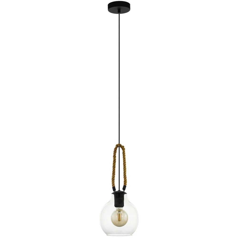 Rodding – 1 Light Pendant – Structured Black Finish – Brown Roping & Clear Glass Shade
