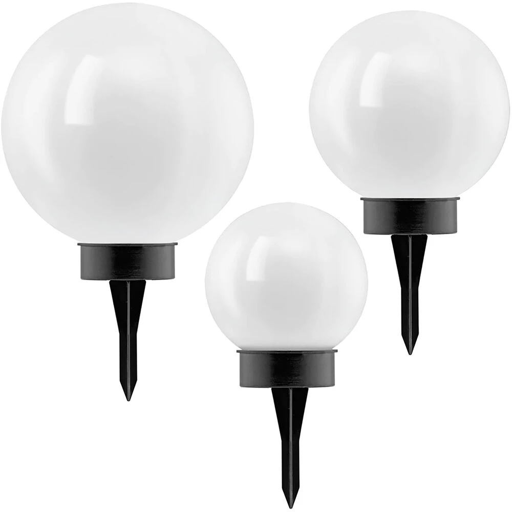 Solar – Set of 3 – Integrated LED Outdoor Path Lights – White Plastic Sphere Shades