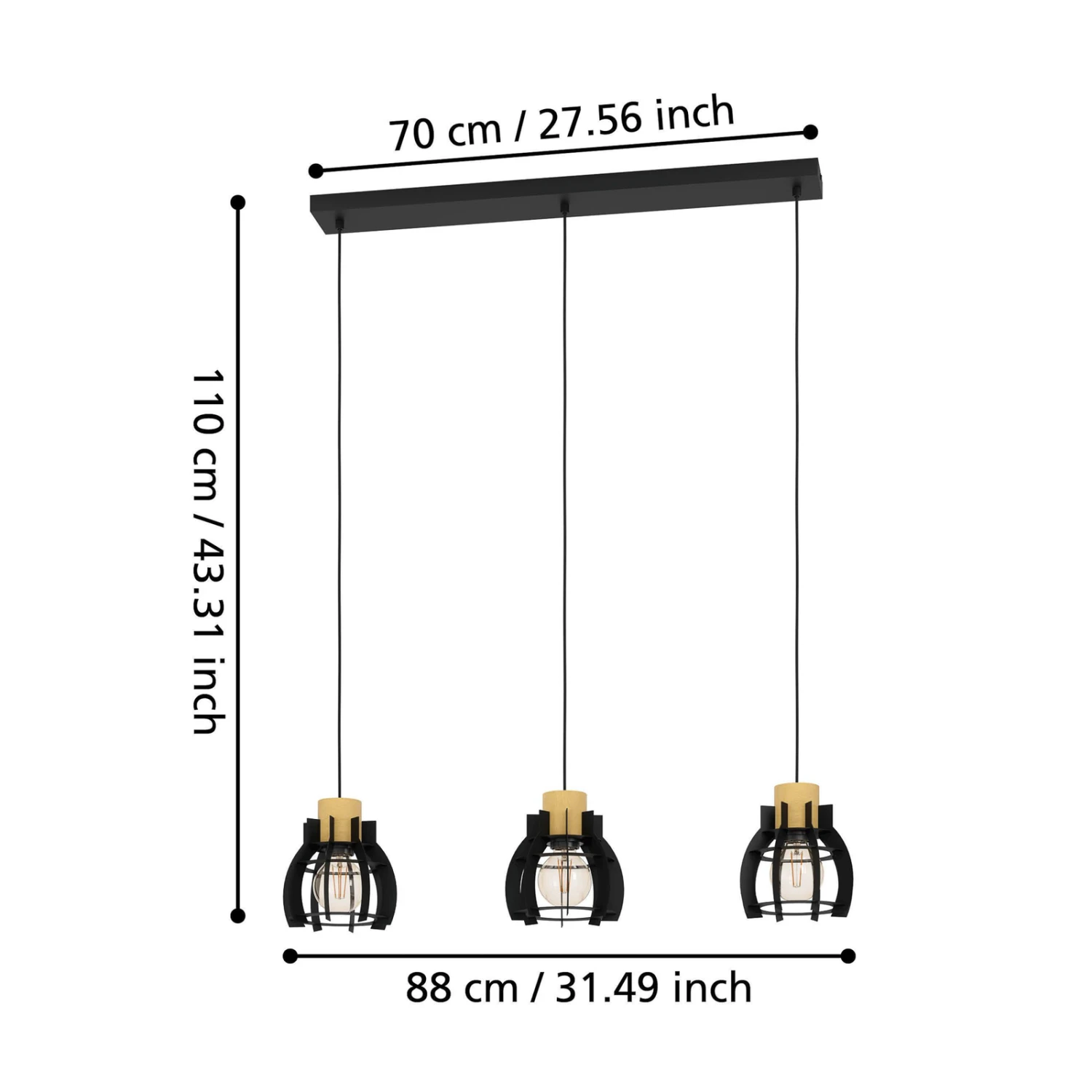 Stillington 1 pendant light, 3-bulb, bar