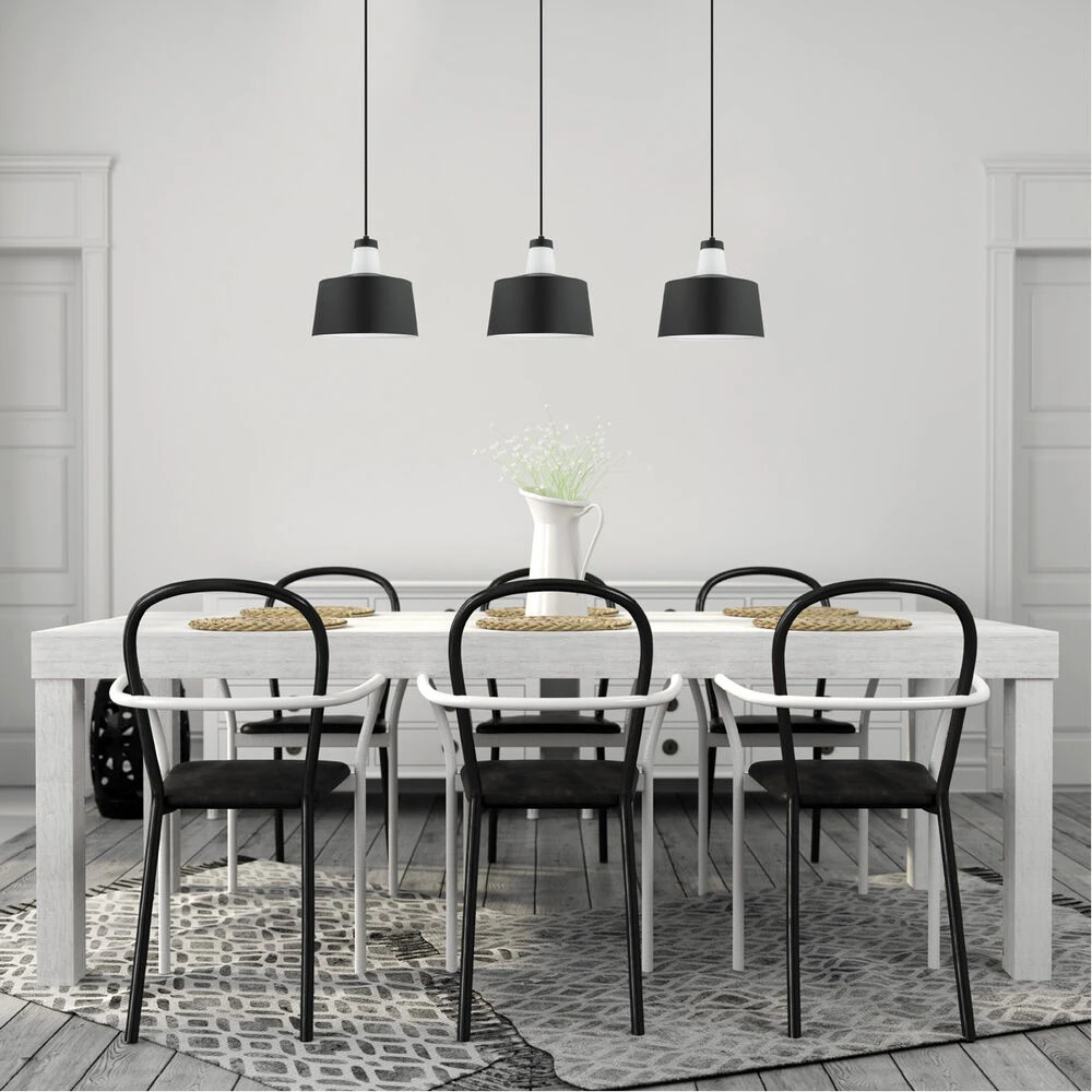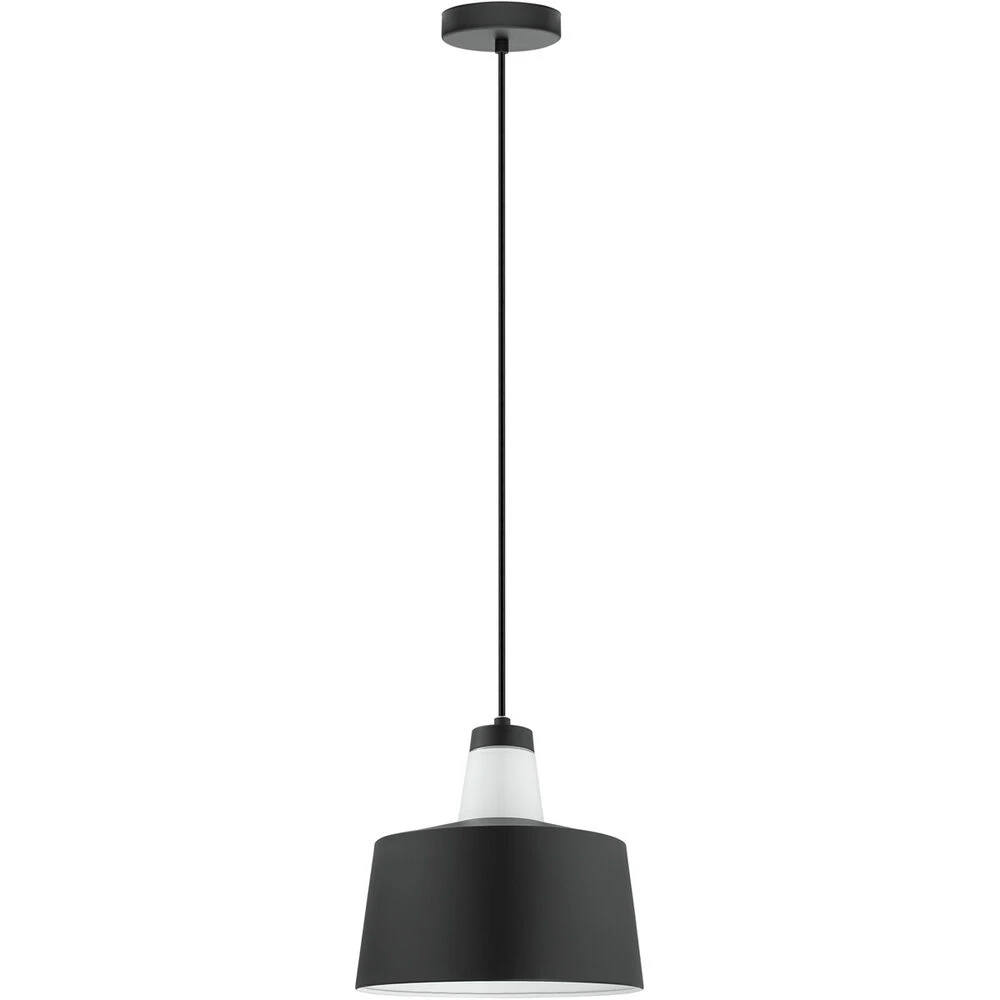 Always on-trend, the Tabanera Pendant Light by Eglo is designed to work with nearly any decorating scheme. The simple shade design features a classic black and white finish with white glass. This pendant light suspends from the ceiling on a slim black hanging cord that is height adjustable