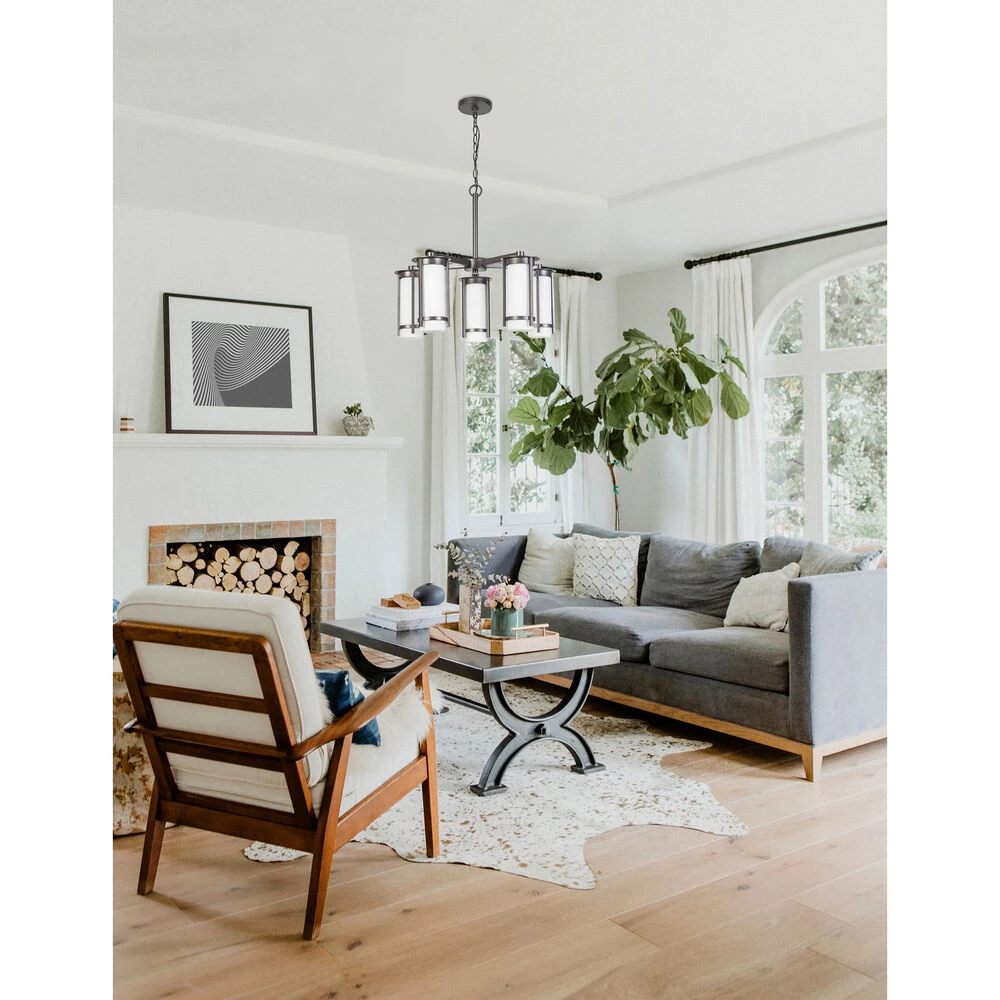 Truxton – 5-Light Chandelier – Graphite – White Glass
