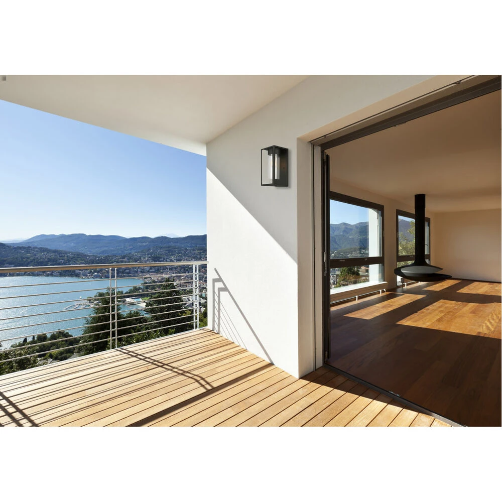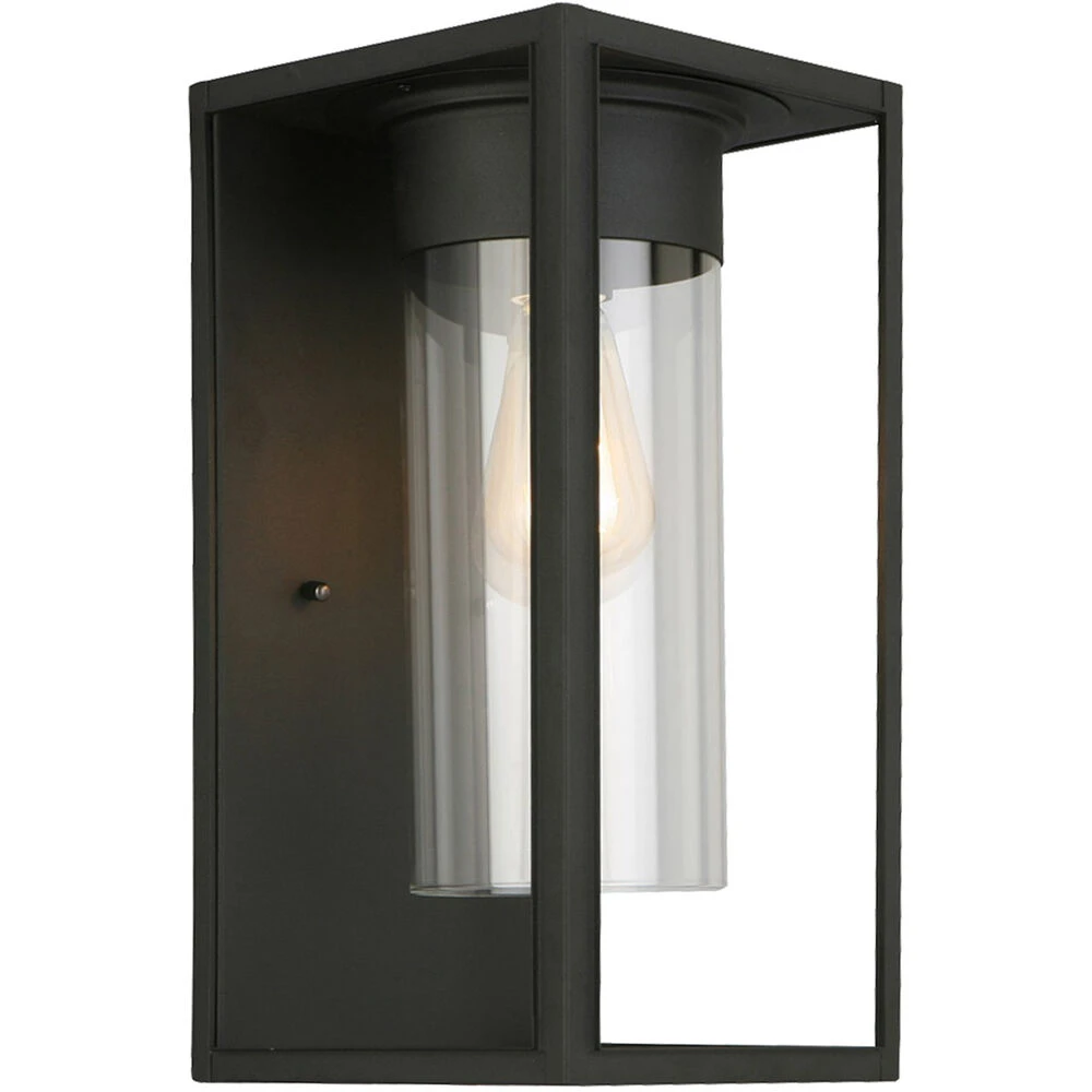 Enhance the look of your décor with the Walker Hill Outdoor Wall Light by Eglo. With its versatile transitional design, this distinctive light is sure to pair well with many decorative styles. Its matte black finish and clear glass combine to form a classic look that is updated with modern touches. The 15 inch open structured frame houses a clear glass cylindrical shade, elevating the traditional lantern profile. Place this 1-light wall light outdoors in the entryway or back patio to introduce a sleek, refined look to the space.