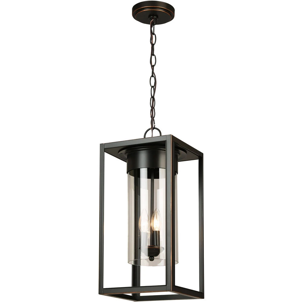 Walker Hill – 3-Light Outdoor Pendant – Oil Rubbed Bronze – Clear Glass