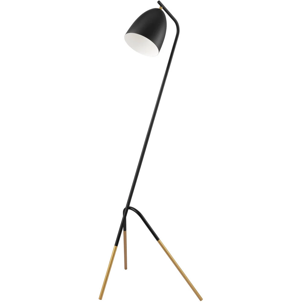 Eglo’s Westlinton Family takes sleek modern style a notch higher.This 1-bulb floor lamp in black and gold finish features an adjustable shade with blackexterior and white interior. Boasting curved design and kickstand, the floor lamp willcomplement the interior decor with stylish presence and lighting. Great for bedroom, office,living room, etc.
